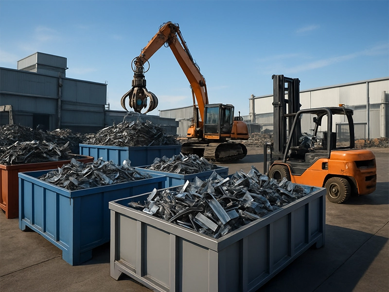 Proyecto de tolvas abiertas diseñadas a medida para una planta automotriz, enfocadas en la recolección de chatarra metálica y residuos sólidos.